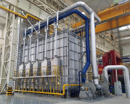 天然氣臺車爐是新型燃?xì)狻⑷細(xì)夤I(yè)爐采用了全硅酸鋁耐火纖維爐墻、高速調(diào)溫自控?zé)住⑾冗M(jìn)的計(jì)算機(jī)自控系統(tǒng)、余熱回收裝置、爐體全密封等多項(xiàng)先進(jìn)技術(shù)。 臺車式熱處理爐是實(shí)現(xiàn)熱處理工藝的關(guān)鍵設(shè)備。被處理工件的力學(xué)性能、物理性能、化學(xué)性能及使用壽命能否達(dá)到預(yù)期的效果取決于所用熱處理爐的性能即爐膛均溫性能,因此熱處理爐的爐膛均溫性十分重要。 熱處理爐的爐膛均溫主要取決于燒嘴、燒嘴(控溫區(qū))布置方式、溫度系統(tǒng)的智能化控制(合理的熱處理爐溫度控制算法)、爐體的密封等。